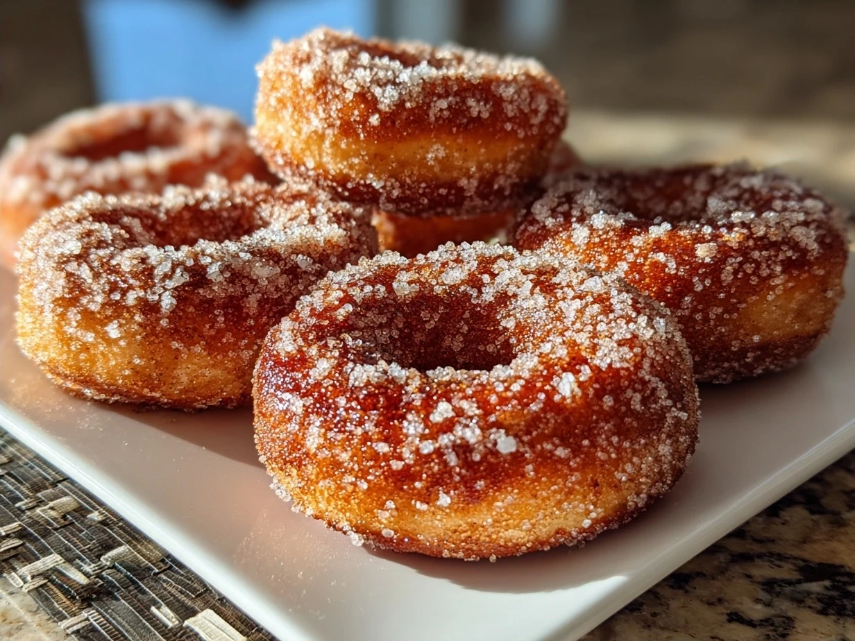 For a baked version, bake donuts at 375°F (190°C) for 12-15 minutes and then coat with cinnamon sugar. Serve warm with a hot cup of apple cider or coffee for an extra cozy experience.