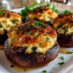 Deliciously hearty baked portobello mushrooms stuffed with a savory blend of cheese, herbs, and breadcrumbs, perfect as a flavorful vegetarian main or side dish.