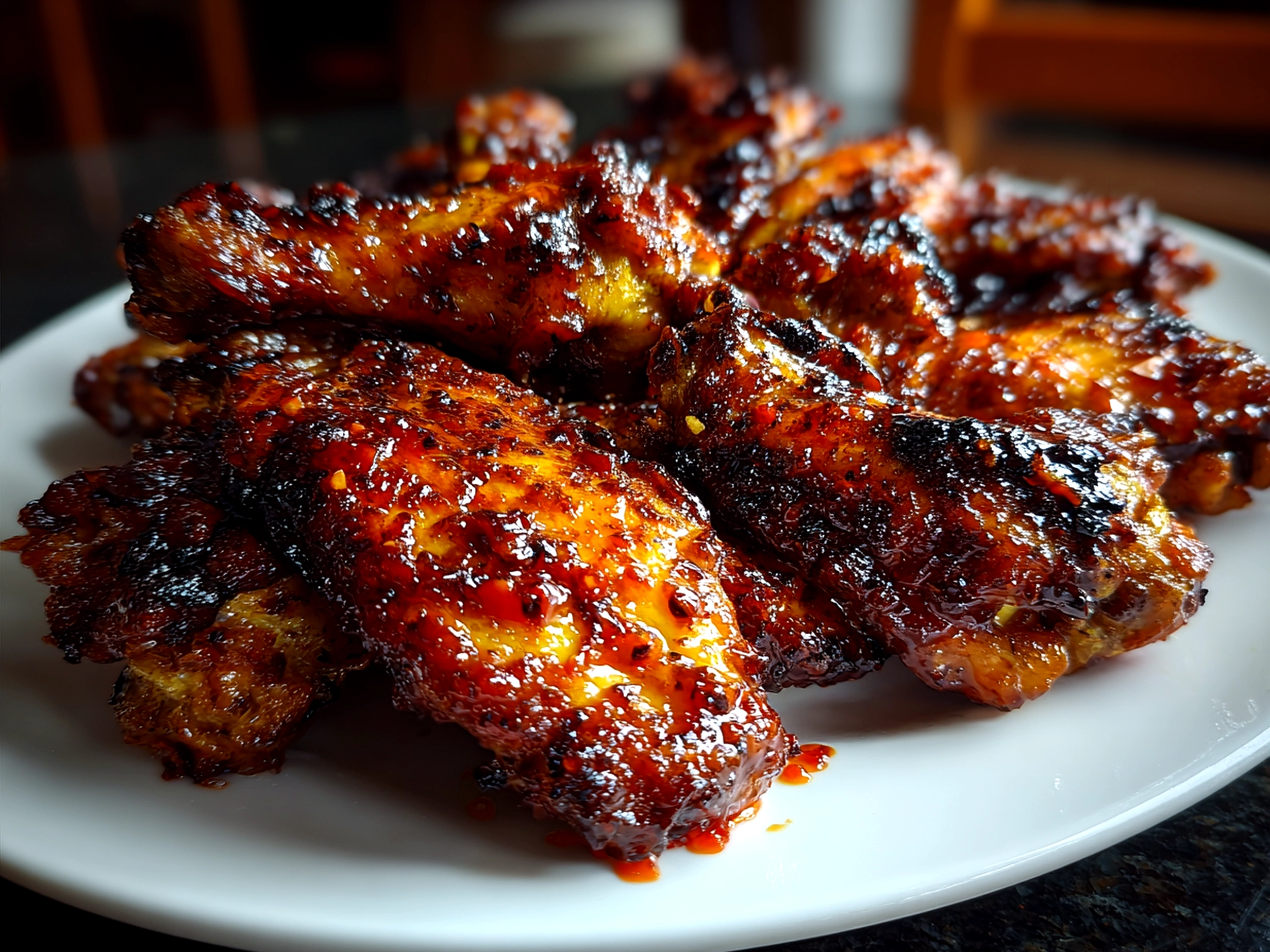 For the best presentation, lay your wings on a rustic platter or wooden board, letting that spicy sweet glaze glisten under the light.