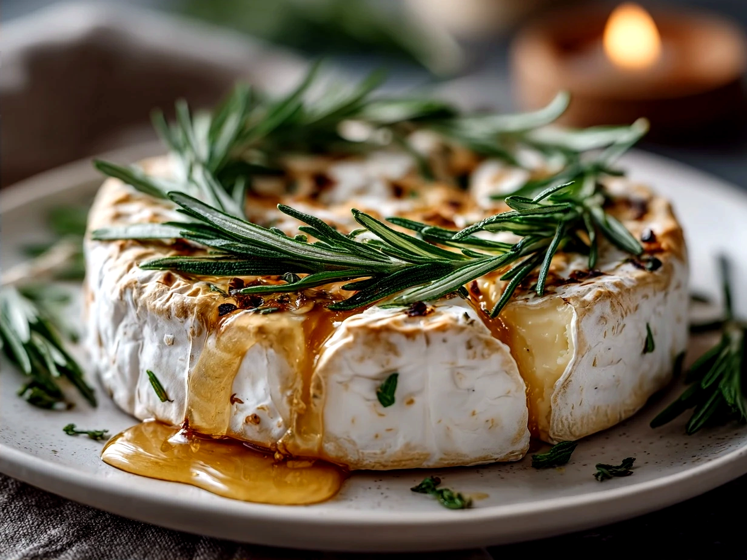 Delightful Brie Cheese Wheel with Rosemary Wreath for Elegant Entertaining