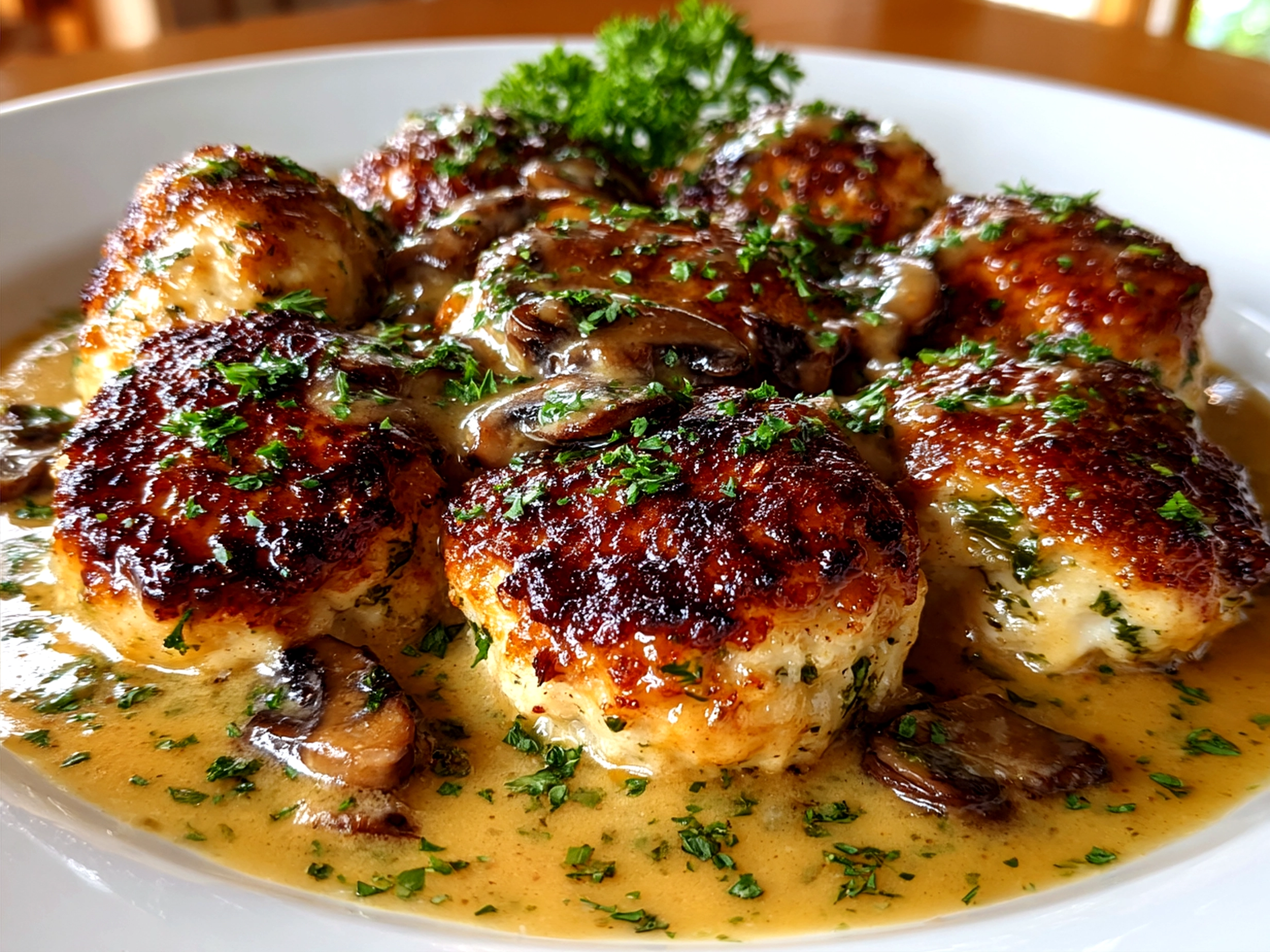 Deliciously tender chicken meatballs simmered in a rich, savory Marsala wine sauce, perfect for a comforting Italian-inspired dinner.