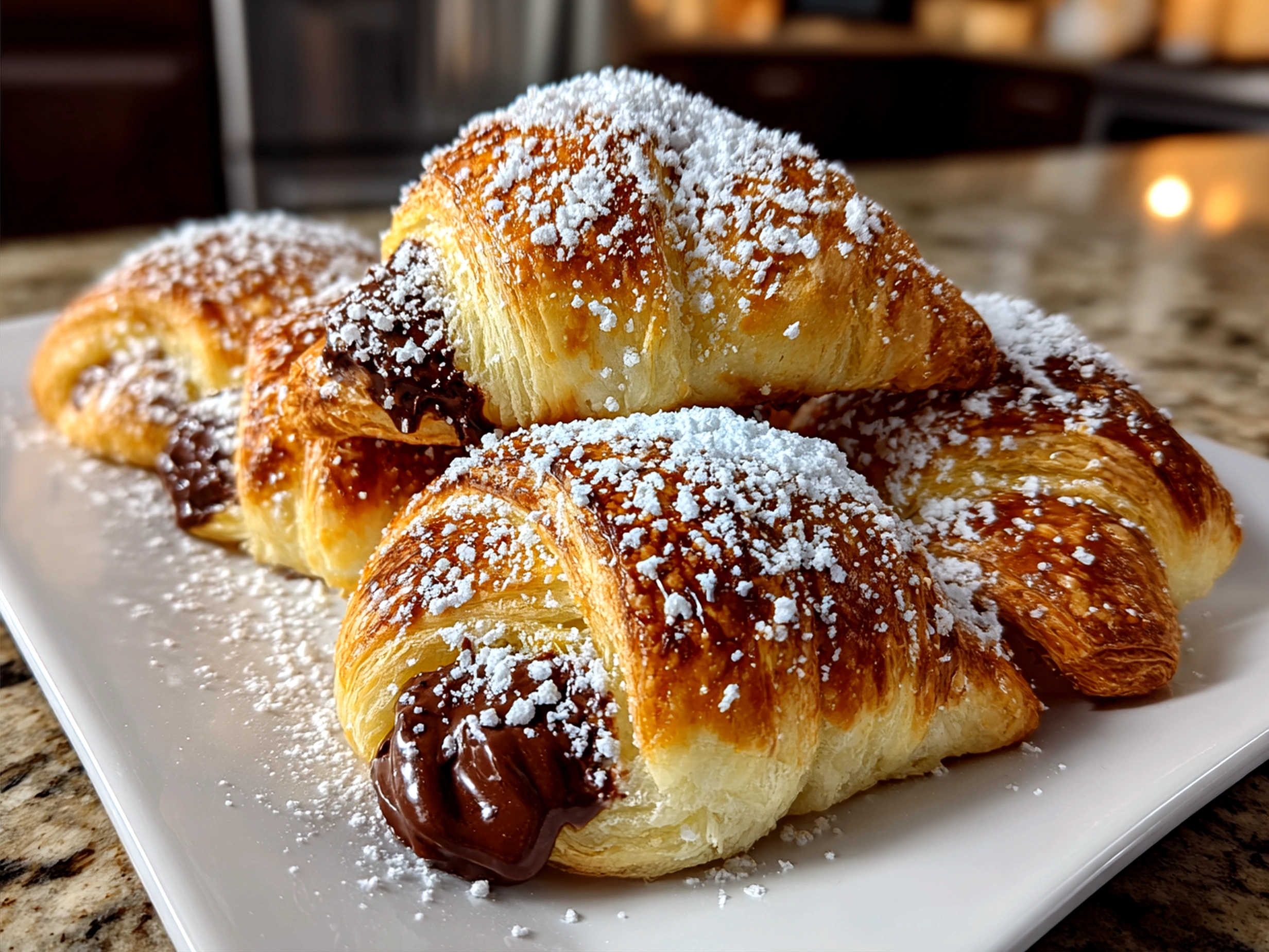 Delight in these golden, flaky crescent rolls filled with creamy Nutella, perfect for a quick dessert or breakfast treat.