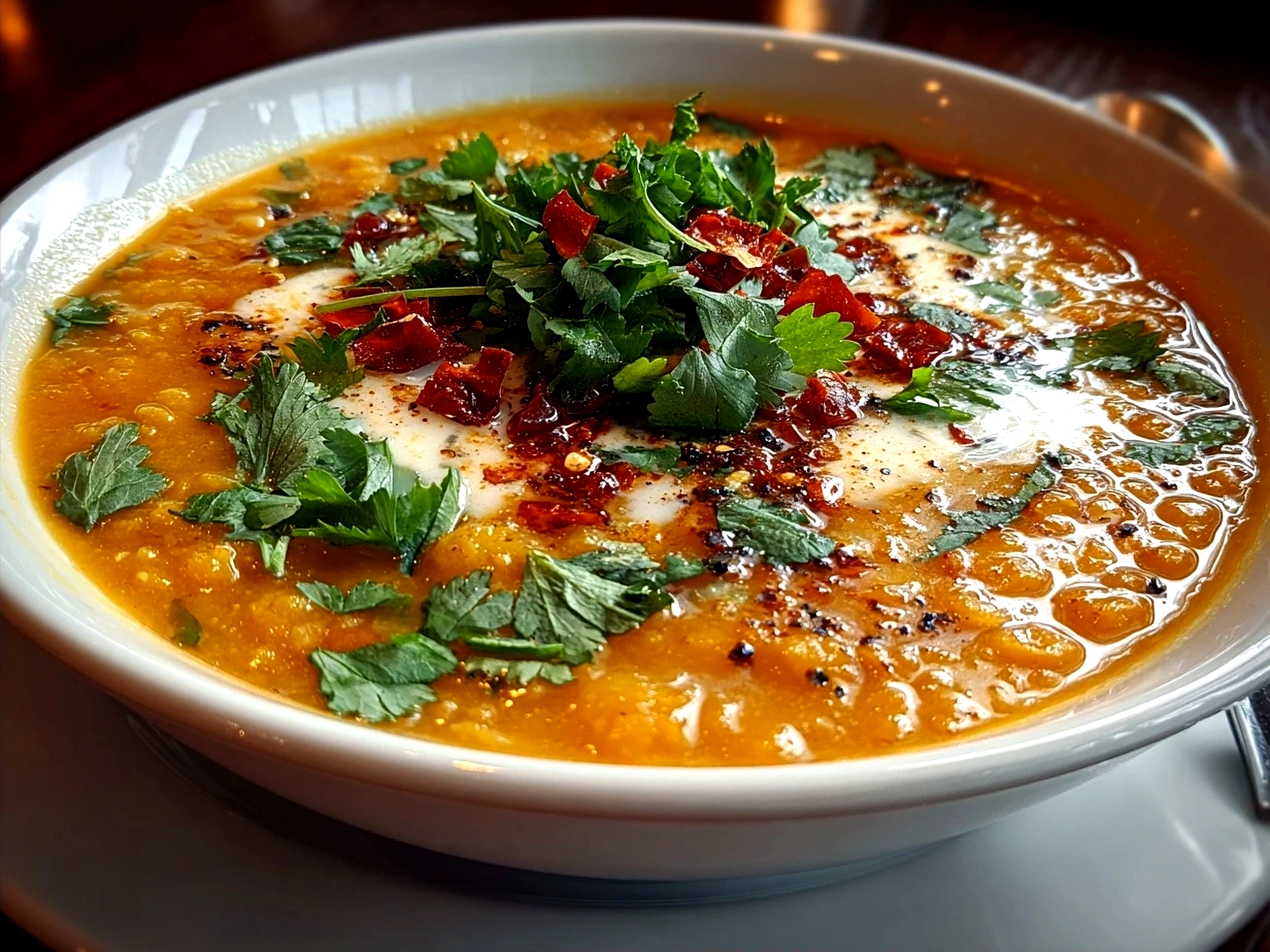 A creamy and flavorful coconut curry lentil soup that combines aromatic spices with hearty lentils for a comforting, nutritious meal.