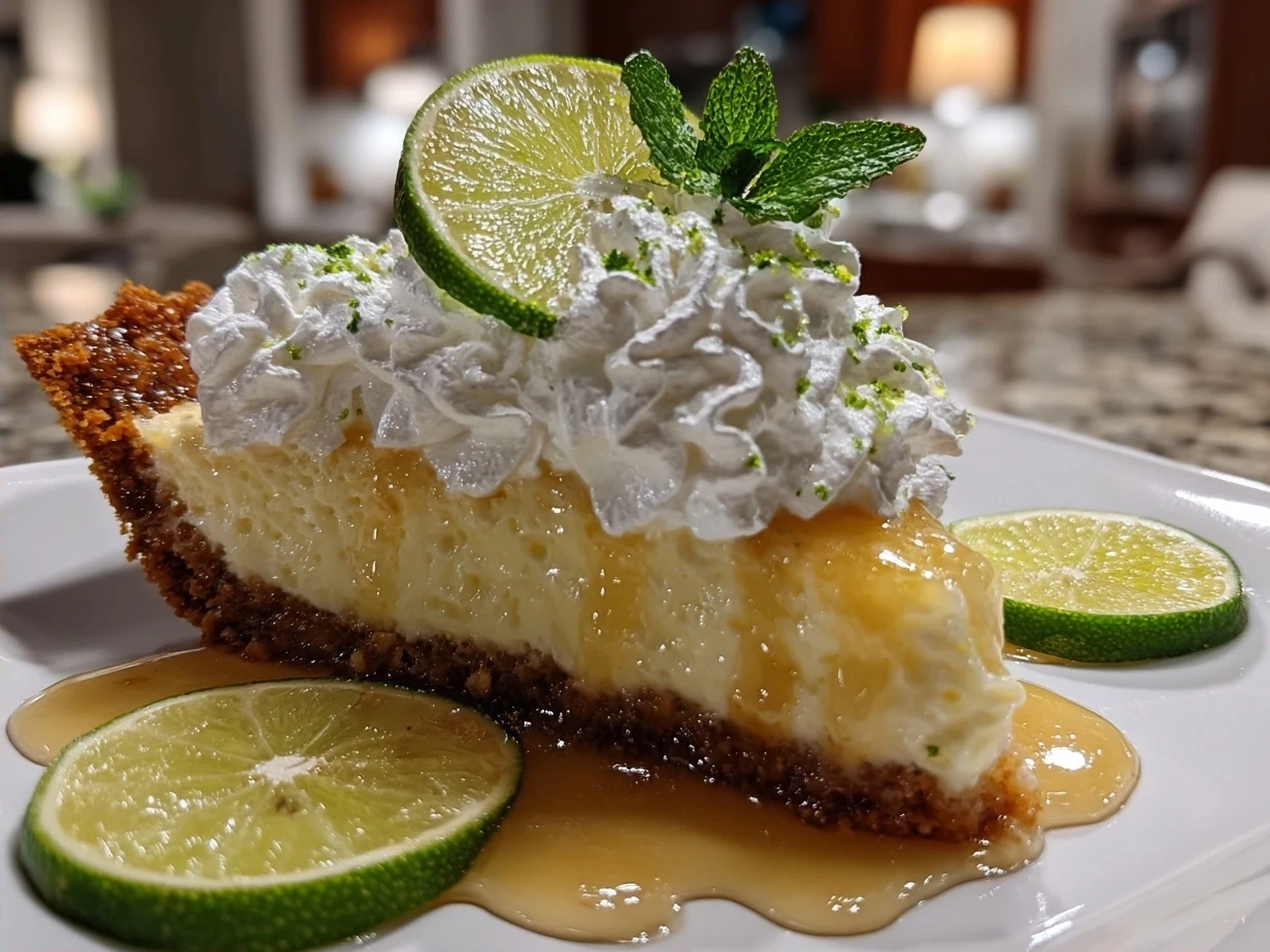 For plating, a neat slice topped with freshly whipped cream and a few thin lime slices or zest sprinkles looks elegant while keeping things simple. It’s a beautiful contrast with the rustic graham cracker crust.