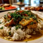 I remember the first time I savored a bowl of Smothered Chicken Rice — it was like a cozy hug in meal form. Sitting around the kitchen table with family, the comforting aroma filled the air even before the first spoonful touched my lips. What made this dish unforgettable was its perfect harmony: tender chicken enveloped in a creamy sauce, nestling on a bed of fluffy, flavorful rice. It was so satisfying, it instantly became a soul food chicken recipe I wanted to recreate at home.