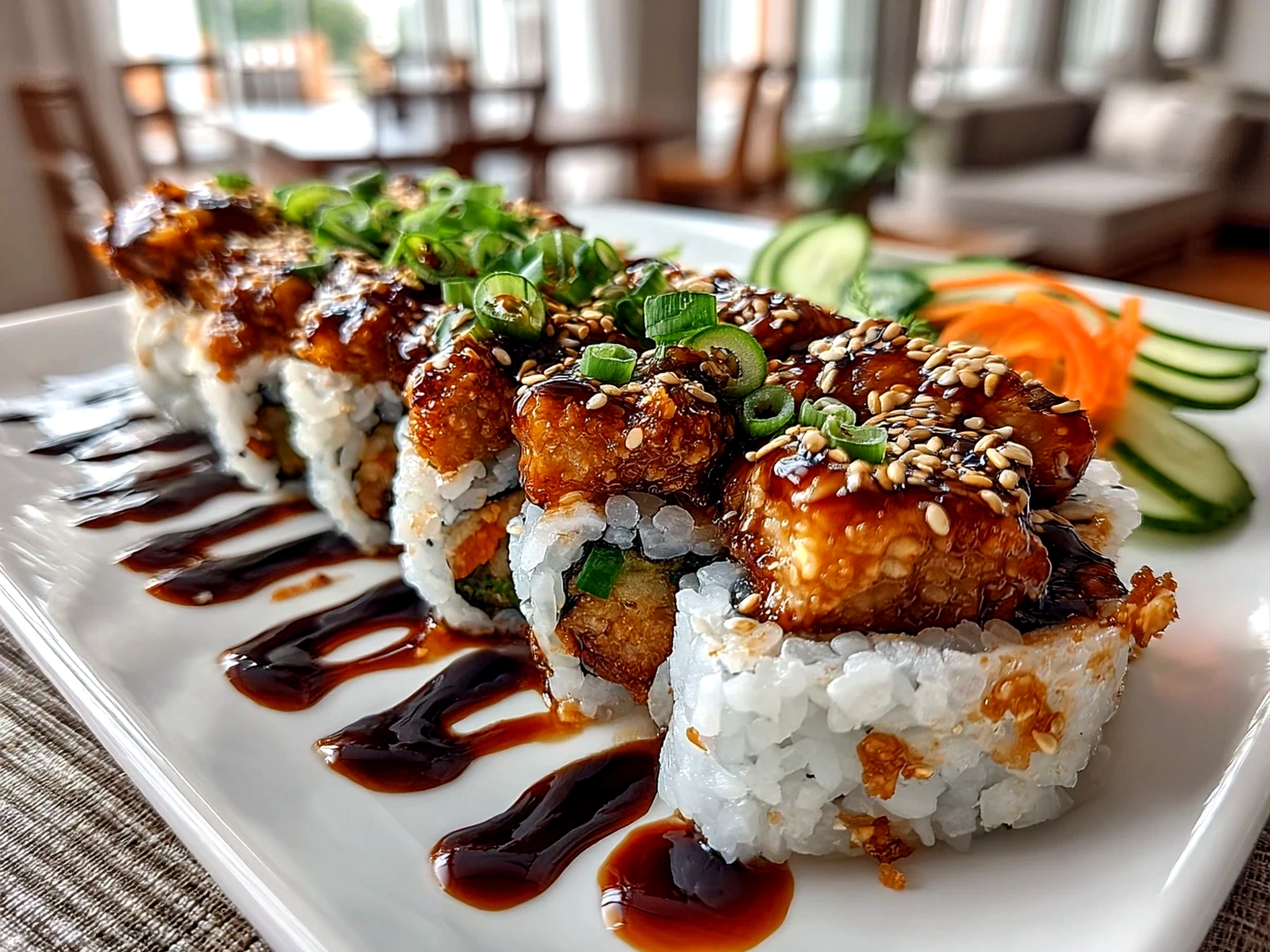 Over time, I’ve loved trying different variations: swapping edamame for crispy tofu like the one in Vegan Sushi Rolls with Crispy Tofu, adding smoky roasted sweet potatoes, or drizzling spicy mayo for an extra creamy kick. The version that gets the most smiles is still the classic mix of crisp cucumber, creamy avocado, and that signature crunchy tempura touch.