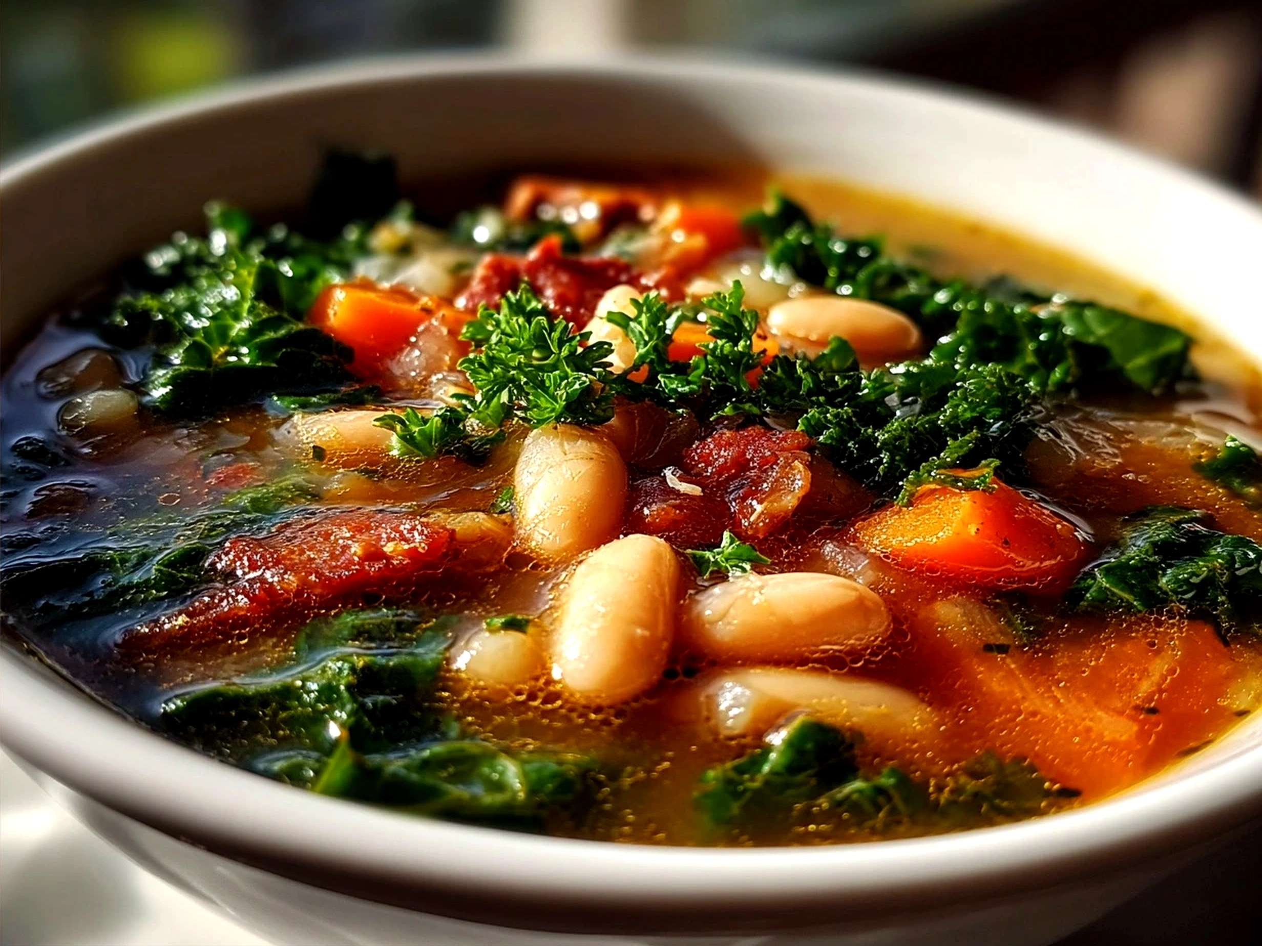 A hearty and nutritious white bean kale soup that’s perfect for a cozy meal, combining tender kale with creamy white beans in a flavorful broth.